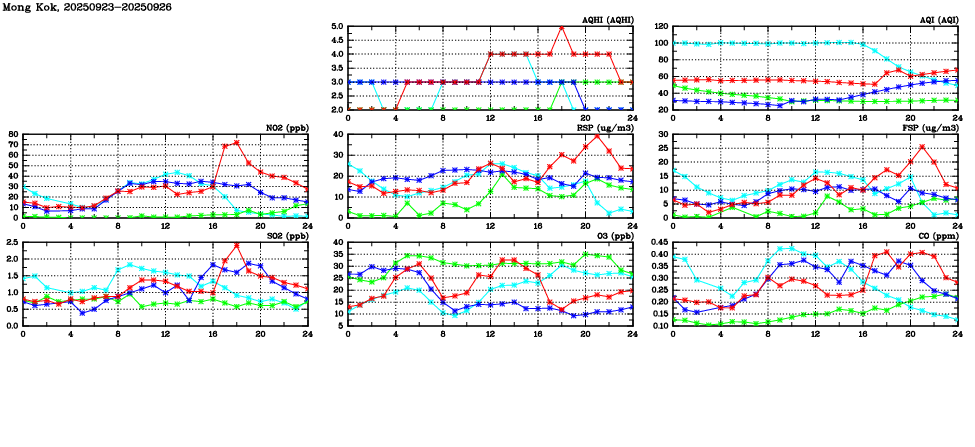 Parameters: | AQHI | AQI | RSP | FSP | NO2 | SO2 | O3 | CO | Temp | WS | WD |