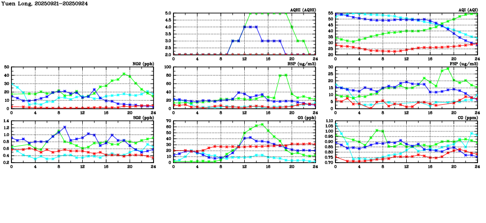 Parameters: | AQHI | AQI | RSP | FSP | NO2 | SO2 | O3 | CO | Temp | WS | WD |