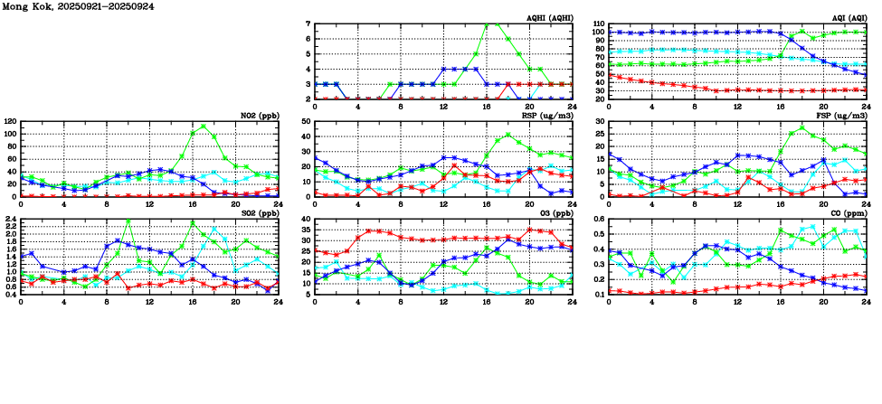 Parameters: | AQHI | AQI | RSP | FSP | NO2 | SO2 | O3 | CO | Temp | WS | WD |