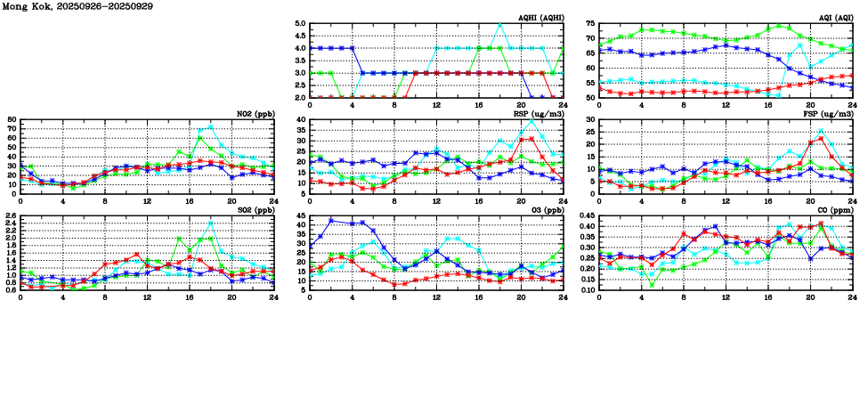 Parameters: | AQHI | AQI | RSP | FSP | NO2 | SO2 | O3 | CO | Temp | WS | WD |
