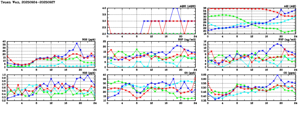 Parameters: | AQHI | AQI | RSP | FSP | NO2 | SO2 | O3 | CO | Temp | WS | WD |