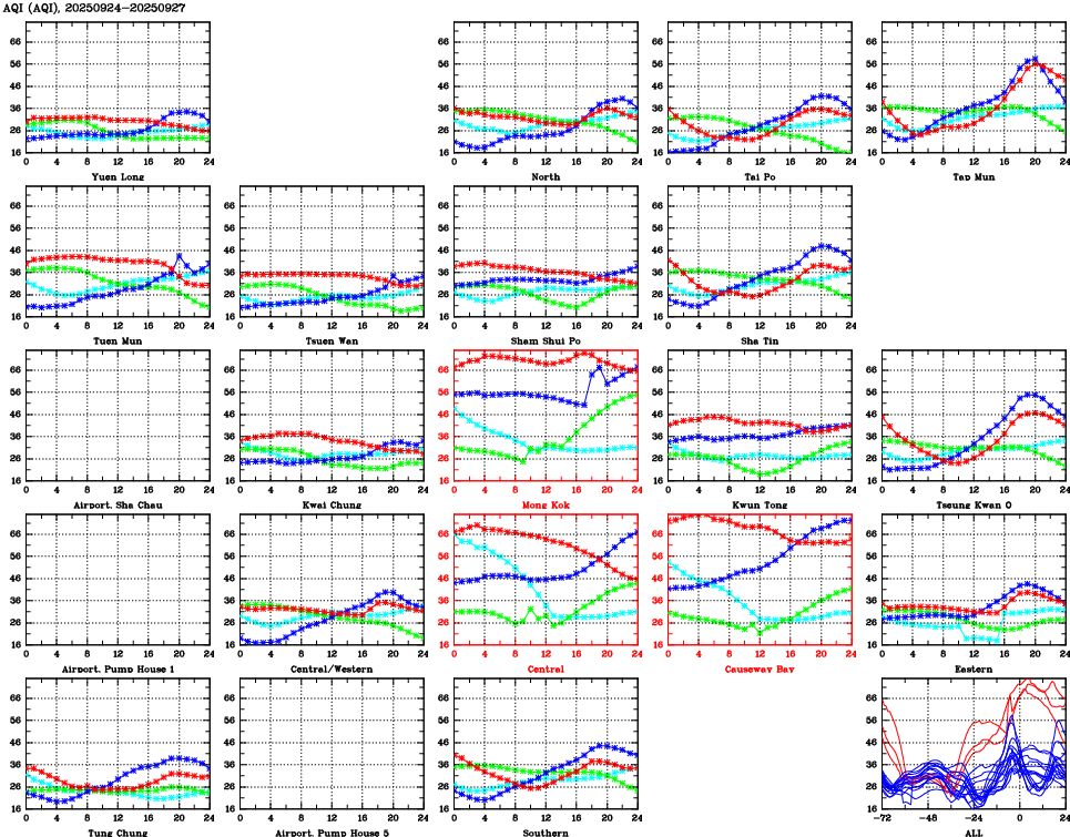 Parameters: | AQHI | AQI | RSP | FSP | NO2 | SO2 | O3 | CO | Temp | WS | WD |