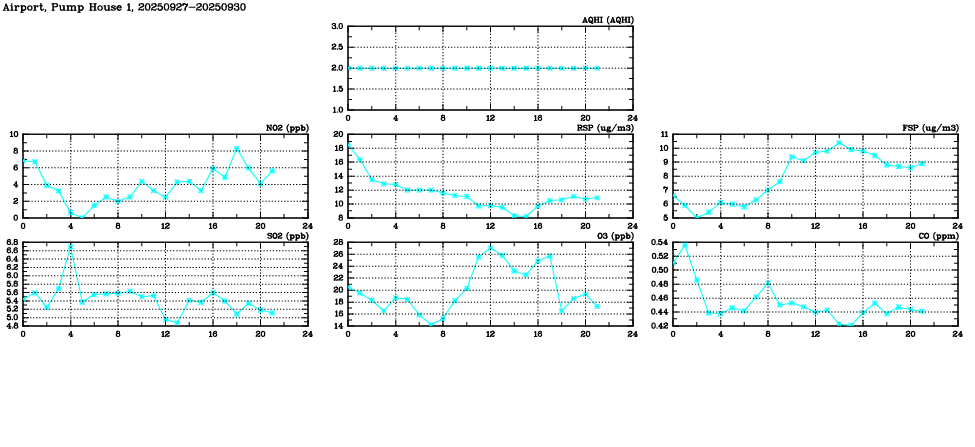 Parameters: | AQHI | AQI | RSP | FSP | NO2 | SO2 | O3 | CO | Temp | WS | WD |
