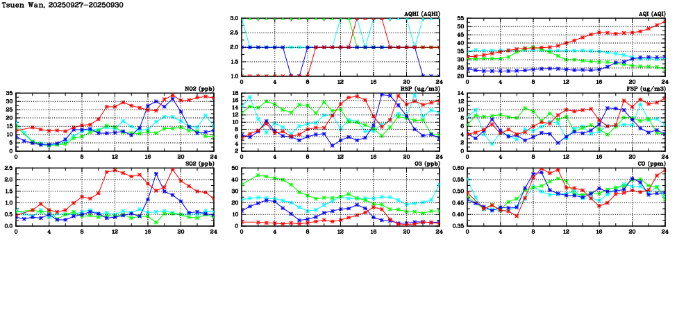 Parameters: | AQHI | AQI | RSP | FSP | NO2 | SO2 | O3 | CO | Temp | WS | WD |