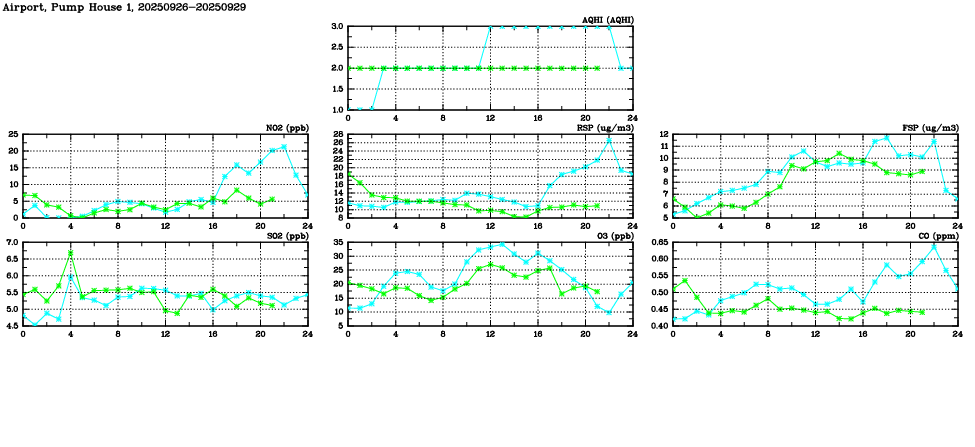 Parameters: | AQHI | AQI | RSP | FSP | NO2 | SO2 | O3 | CO | Temp | WS | WD |