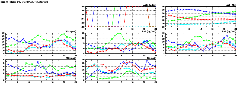 Parameters: | AQHI | AQI | RSP | FSP | NO2 | SO2 | O3 | CO | Temp | WS | WD |