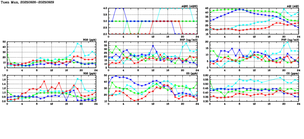 Parameters: | AQHI | AQI | RSP | FSP | NO2 | SO2 | O3 | CO | Temp | WS | WD |