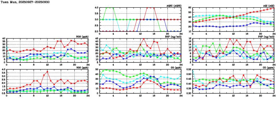 Parameters: | AQHI | AQI | RSP | FSP | NO2 | SO2 | O3 | CO | Temp | WS | WD |