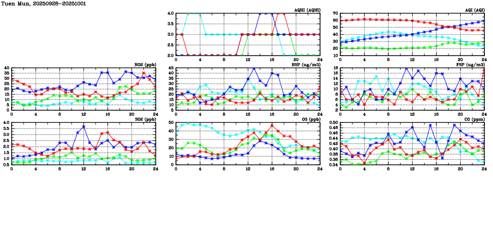 Parameters: | AQHI | AQI | RSP | FSP | NO2 | SO2 | O3 | CO | Temp | WS | WD |