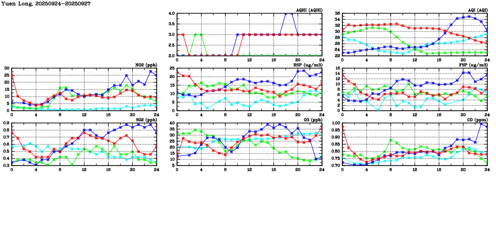 Parameters: | AQHI | AQI | RSP | FSP | NO2 | SO2 | O3 | CO | Temp | WS | WD |