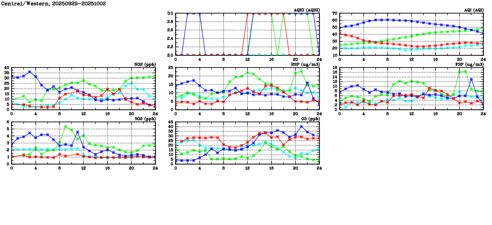 Parameters: | AQHI | AQI | RSP | FSP | NO2 | SO2 | O3 | CO | Temp | WS | WD |