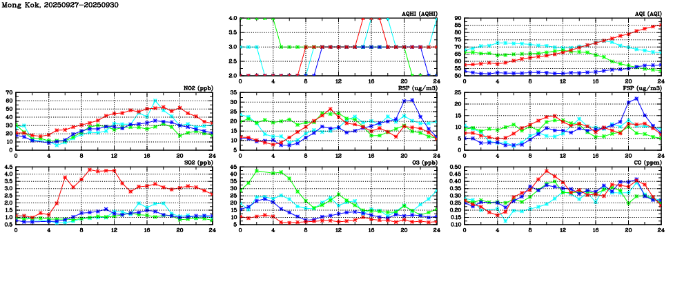 Parameters: | AQHI | AQI | RSP | FSP | NO2 | SO2 | O3 | CO | Temp | WS | WD |
