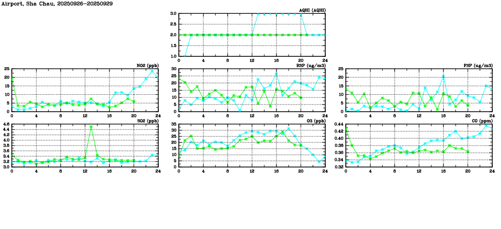 Parameters: | AQHI | AQI | RSP | FSP | NO2 | SO2 | O3 | CO | Temp | WS | WD |