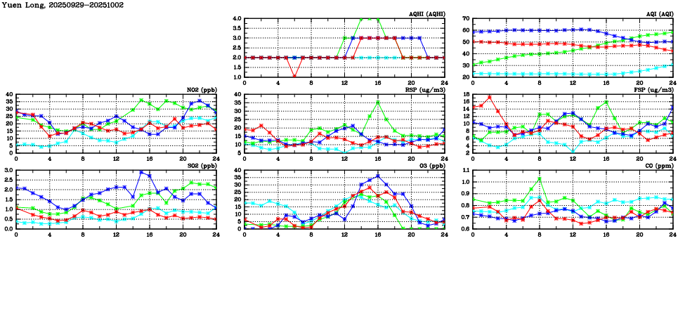 Parameters: | AQHI | AQI | RSP | FSP | NO2 | SO2 | O3 | CO | Temp | WS | WD |