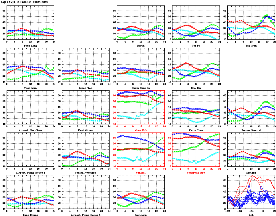Parameters: | AQHI | AQI | RSP | FSP | NO2 | SO2 | O3 | CO | Temp | WS | WD |