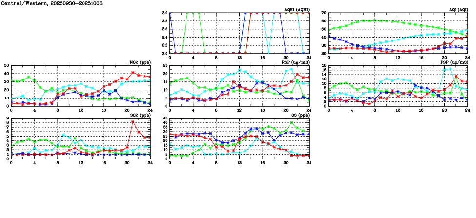 Parameters: | AQHI | AQI | RSP | FSP | NO2 | SO2 | O3 | CO | Temp | WS | WD |
