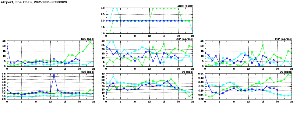 Parameters: | AQHI | AQI | RSP | FSP | NO2 | SO2 | O3 | CO | Temp | WS | WD |