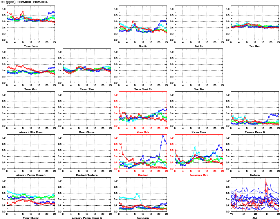 Parameters: | AQHI | AQI | RSP | FSP | NO2 | SO2 | O3 | CO | Temp | WS | WD |