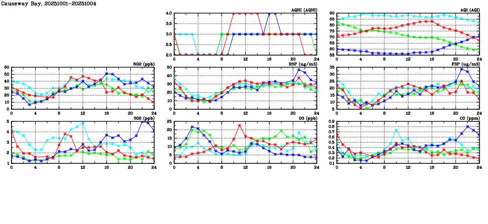 Parameters: | AQHI | AQI | RSP | FSP | NO2 | SO2 | O3 | CO | Temp | WS | WD |