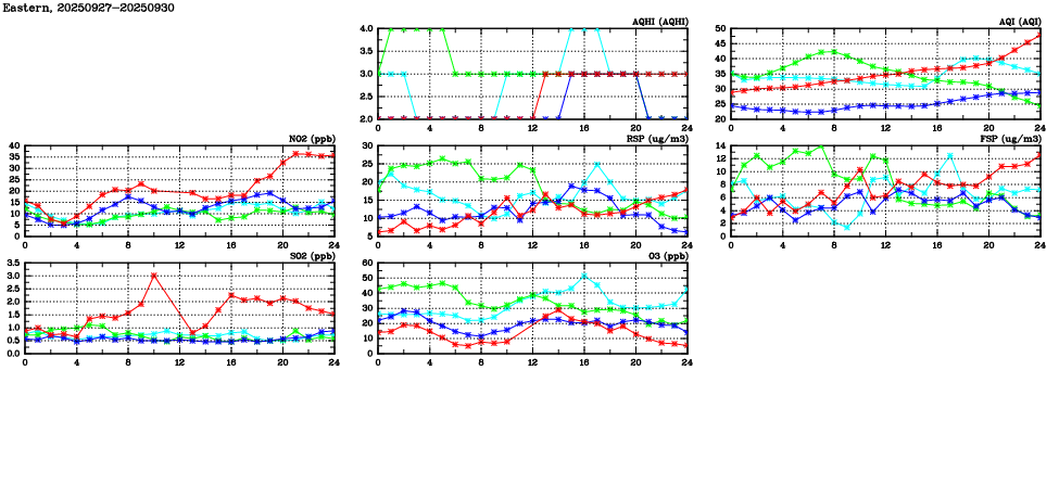 Air Quality Data Time Series in Eastern (2025/09/30) | ( Line colors: Day -3 Day -2 Day -1 Current day ) | 2D Map Current AQHI |