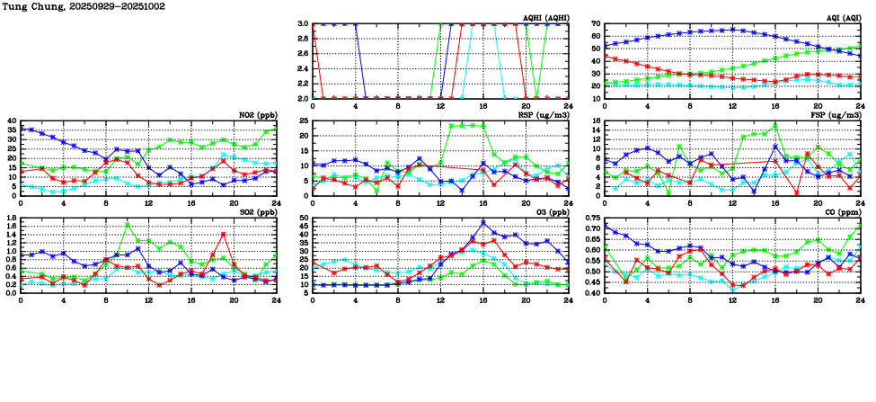 Parameters: | AQHI | AQI | RSP | FSP | NO2 | SO2 | O3 | CO | Temp | WS | WD |