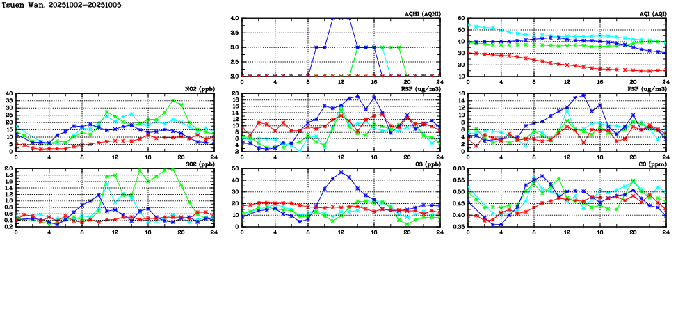 Parameters: | AQHI | AQI | RSP | FSP | NO2 | SO2 | O3 | CO | Temp | WS | WD |