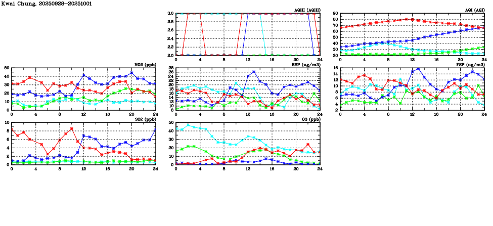 Parameters: | AQHI | AQI | RSP | FSP | NO2 | SO2 | O3 | CO | Temp | WS | WD |