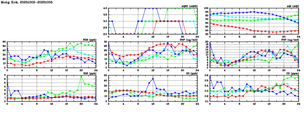 Parameters: | AQHI | AQI | RSP | FSP | NO2 | SO2 | O3 | CO | Temp | WS | WD |