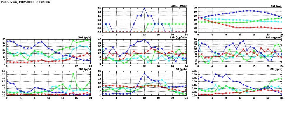 Parameters: | AQHI | AQI | RSP | FSP | NO2 | SO2 | O3 | CO | Temp | WS | WD |