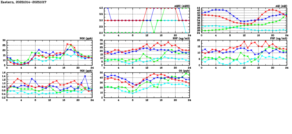 | Air Quality Data Time Series in Eastern (2025/10/17) | ( Line colors: Day -3 Day -2 Day -1 Current day ) | 2D Map Current AQHI |