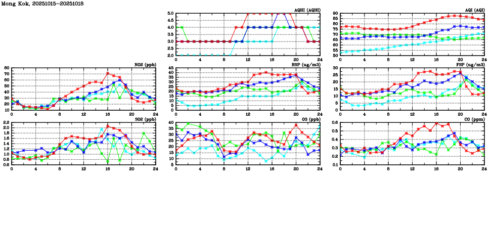 | Parameters: | AQHI | AQI | RSP | FSP | NO2 | SO2 | O3 | CO | Temp | WS | WD |
