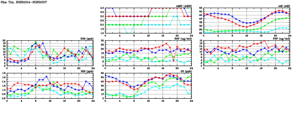 | Air Quality Data Time Series in Sha Tin (2025/10/17) | ( Line colors: Day -3 Day -2 Day -1 Current day ) | 2D Map Current AQHI |