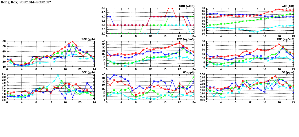 | Parameters: | AQHI | AQI | RSP | FSP | NO2 | SO2 | O3 | CO | Temp | WS | WD |