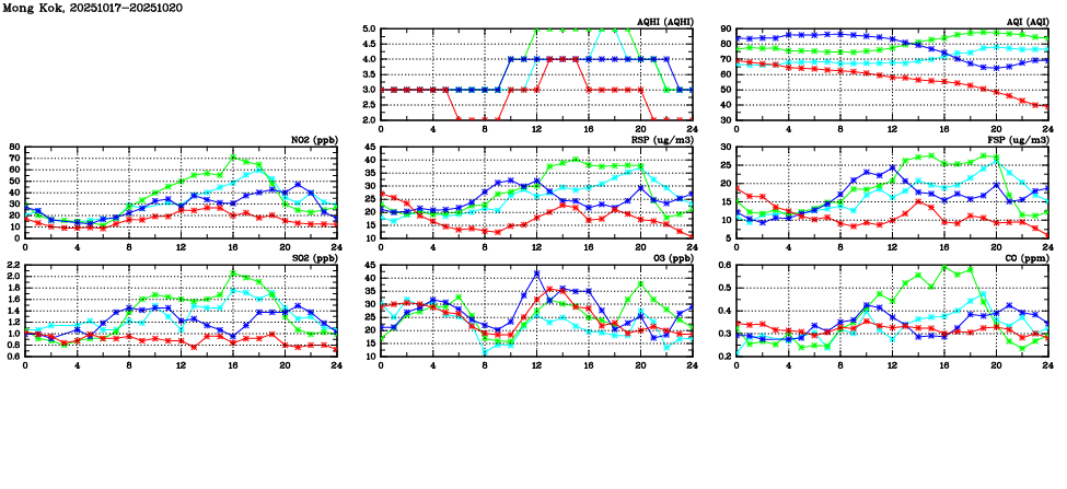 | Parameters: | AQHI | AQI | RSP | FSP | NO2 | SO2 | O3 | CO | Temp | WS | WD |
