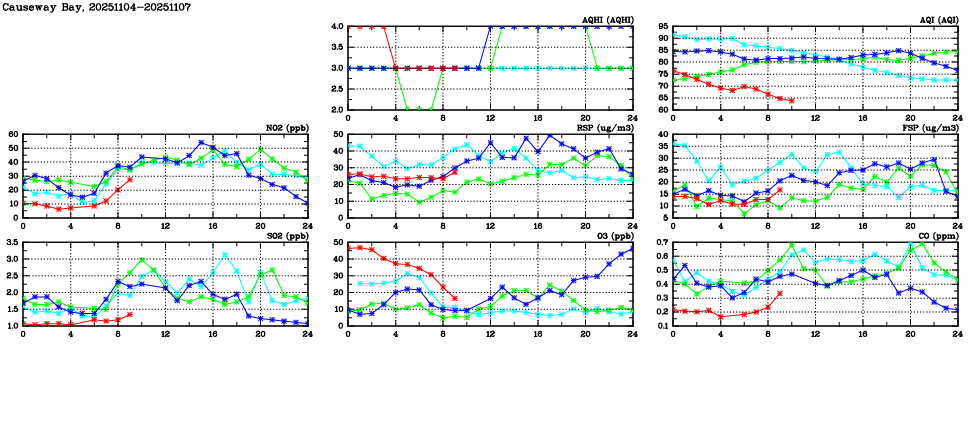 Air Quality Data Time Series in Causeway Bay (2025/11/07)