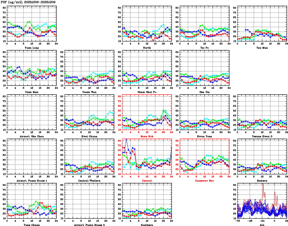 | Air Quality Data Time Series for FSP (2025/12/09) | ( Line colors: Day -3 Day -2 Day -1 Current day ) | 2D Map Current AQHI |