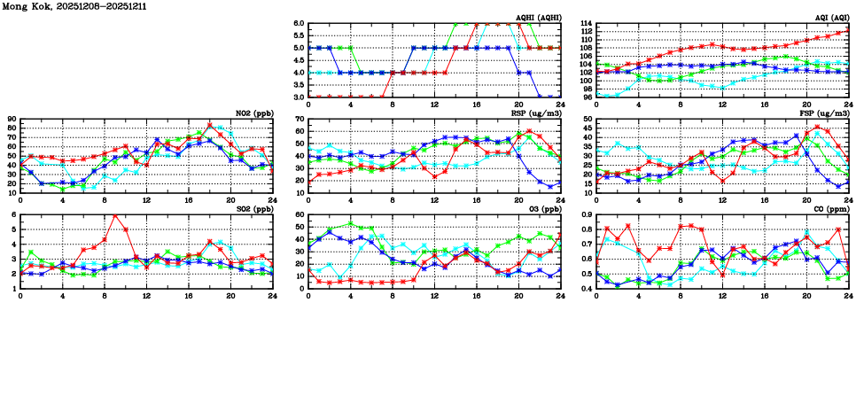 | Parameters: | AQHI | AQI | RSP | FSP | NO2 | SO2 | O3 | CO | Temp | WS | WD |
