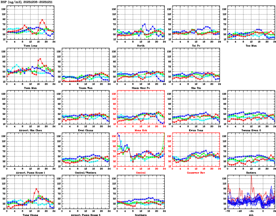 | Air Quality Data Time Series for RSP (2025/12/11) | ( Line colors: Day -3 Day -2 Day -1 Current day ) | 2D Map Current AQHI |