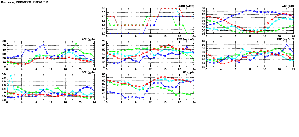 | Air Quality Data Time Series in Eastern (2025/12/12) | ( Line colors: Day -3 Day -2 Day -1 Current day ) | 2D Map Current AQHI |