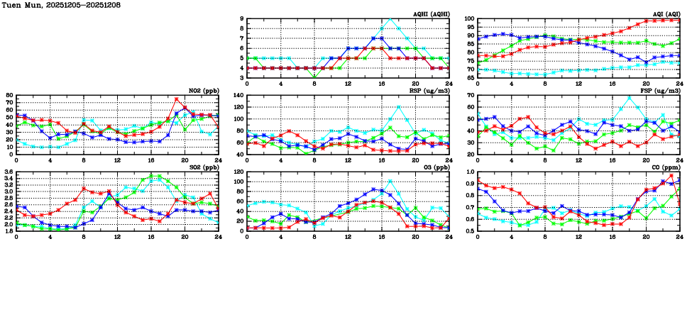 Air Quality Data Time Series in Tuen Mun (2025/12/08)