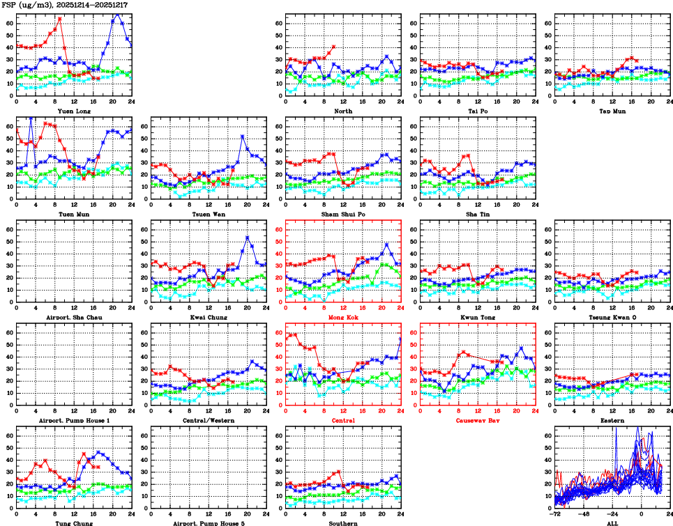 | Air Quality Data Time Series for FSP (2025/12/17) | ( Line colors: Day -3 Day -2 Day -1 Current day ) | 2D Map Current AQHI |