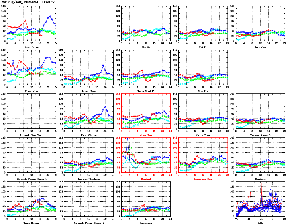| Air Quality Data Time Series for RSP (2025/12/17) | ( Line colors: Day -3 Day -2 Day -1 Current day ) | 2D Map Current AQHI |