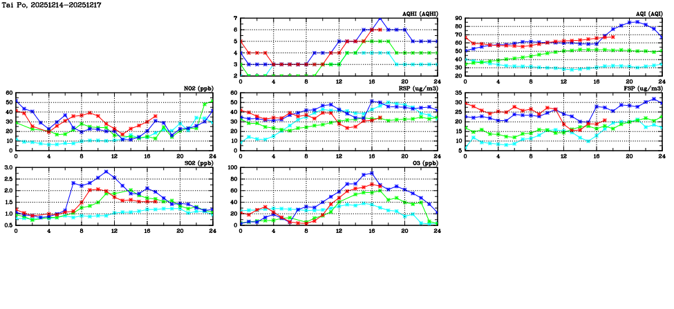 | Air Quality Data Time Series in Tai Po (2025/12/17) | ( Line colors: Day -3 Day -2 Day -1 Current day ) | 2D Map Current AQHI |