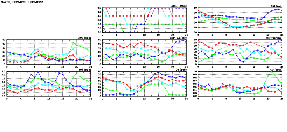 | Air Quality Data Time Series in North (2025/12/22) | ( Line colors: Day -3 Day -2 Day -1 Current day ) | 2D Map Current AQHI |