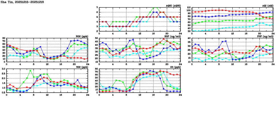 | Air Quality Data Time Series in Sha Tin (2025/12/18) | ( Line colors: Day -3 Day -2 Day -1 Current day ) | 2D Map Current AQHI |