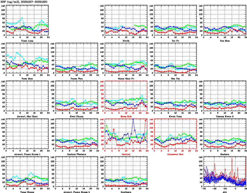 | Air Quality Data Time Series for RSP (2025/12/20) | ( Line colors: Day -3 Day -2 Day -1 Current day ) | 2D Map Current AQHI |