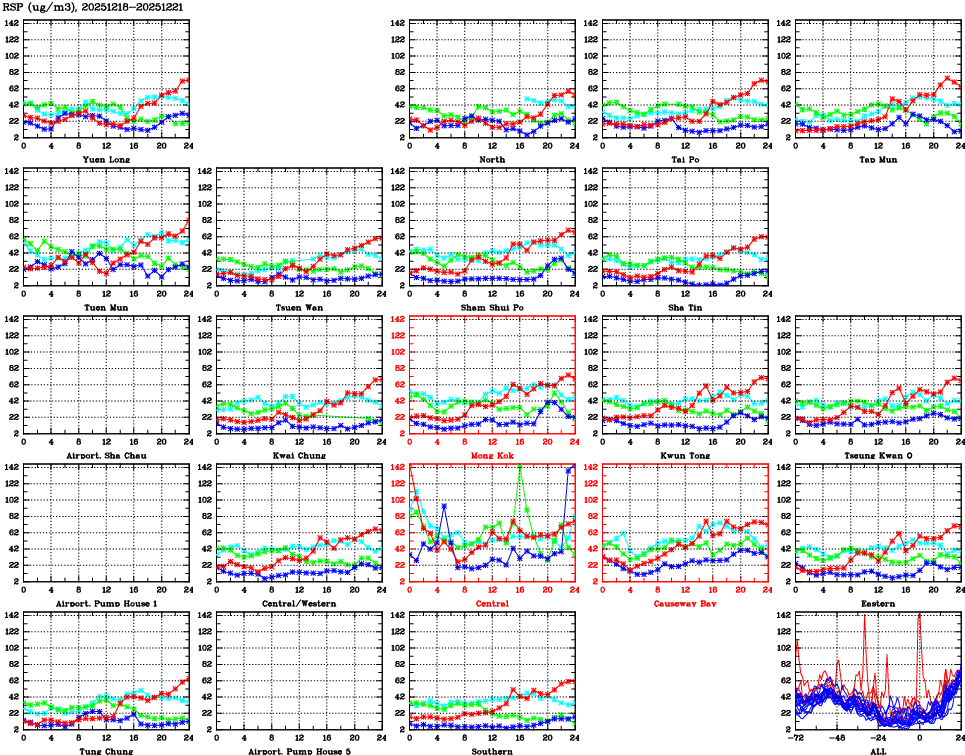 | Air Quality Data Time Series for RSP (2025/12/21) | ( Line colors: Day -3 Day -2 Day -1 Current day ) | 2D Map Current AQHI |