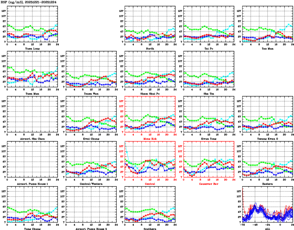 | Air Quality Data Time Series for RSP (2025/12/24) | ( Line colors: Day -3 Day -2 Day -1 Current day ) | 2D Map Current AQHI |