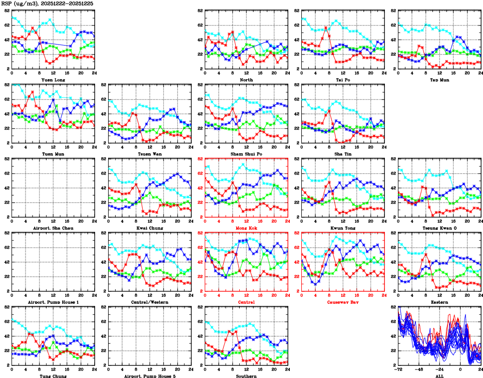 | Air Quality Data Time Series for RSP (2025/12/25) | ( Line colors: Day -3 Day -2 Day -1 Current day ) | 2D Map Current AQHI |