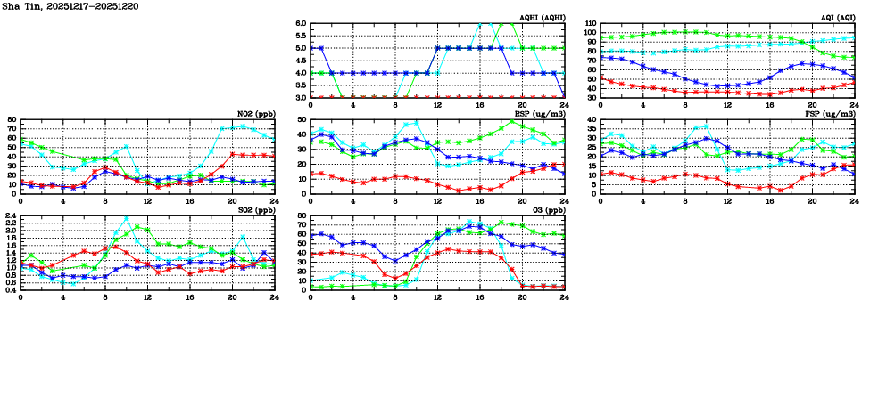 | Air Quality Data Time Series in Sha Tin (2025/12/20) | ( Line colors: Day -3 Day -2 Day -1 Current day ) | 2D Map Current AQHI |